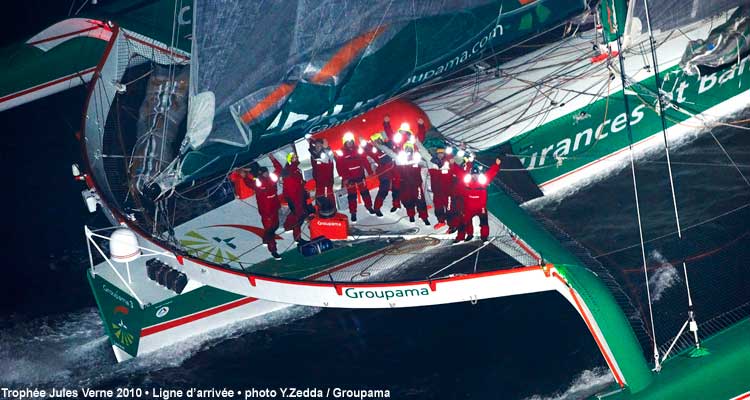 Franck Cammas et ses neuf équipiers sont donc les septièmes détenteurs du Trophée Jules Verne inauguré en 1993 ! Mais le tour du monde effectué par Groupama 3 en 48 jours 7 heures 44 minutes fut très particulier car sa progression s’est faite par à-coups et n’a pris corps qu’après avoir repassé l’équateur, à 2 500 milles de l’arrivée !