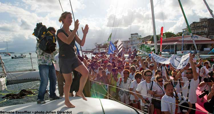 « le départ était fantastique, il y avait tellement de monde à Cap Fréhel que j’ai failli ne pas partir pour rester faire la fête, plaisante encore la navigatrice, et évidemment, je retiendrai aussi l’arrivée, l’accueil est magique, les guadeloupéens sont souriants, il fait beau, c’est génial. Il y a des moments durs en mer et on se dit parfois qu’on ne recommencera jamais mais grâce à ces moments là, on y revient. Ça vaut toutes les peines du monde. »