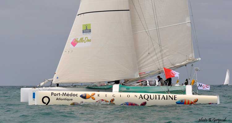 La nouvelle est tombée hier, jeudi 2 décembre. La compagne de Lalou Roucayrol a reçu un appel du CROSS la prévenant que la balise de détresse du Multi 50’ Région Aquitaine – Port-Médoc a été activée suite au chavirage du trimaran à plus de 1 000 milles des côtes [2]. Lalou et ses trois équipiers sont sains et saufs et ont trouvé refuge à l’intérieur de la coque centrale en attendant les secours.