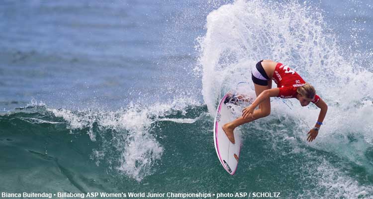 South African dark-horse Bianca Buitendag (ZAF), 17, won the Billabong ASP Women’s World Junior Championships today in a hard-fought final over French talent Justine Dupont (FRA), 19, in two-to-four foot (1 metre) waves at North Narrabeen while Alizee Arnaud (FRA), 20, clinched the overall ASP Women’s World Junior Title with her equal 3rd place result in the event.