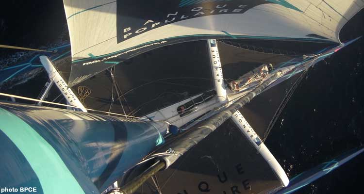 Peu après la vacation audio officielle aujourd’hui à 12h avec son PC Course, l’équipage a mis le Maxi Banque Populaire V sur un flotteur, afin de lever suffisamment la coque centrale et de vérifier l’évolution du problème. Suite à cette manœuvre, Pascal Bidégorry et ses hommes ont choisi la prudence :