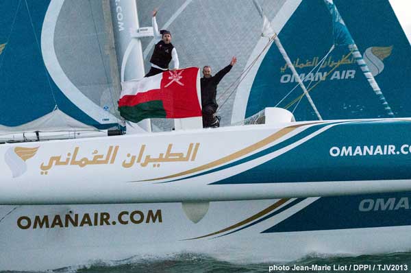 Après 5968 milles nautiques en mode match racing à travers l’Océan Atlantique, le skipper d’Oman Air-Musandam Sidney Gavignet, (Français), et son co-skipper Damian Foxall, (Irlandais), ont coupé la ligne d’arrivée de la Transat Jacques Vabre à Itajaii, au Brésil, à 23:04:09 CET le 18 novembre en deuxième position, seulement 5 heures et 15 secondes après Edmond de Rothschild mené par Sébastien Josse et Charles Caudrelier, après 11 jours, 10 heures, 4 minutes et 9 secondes de mer.